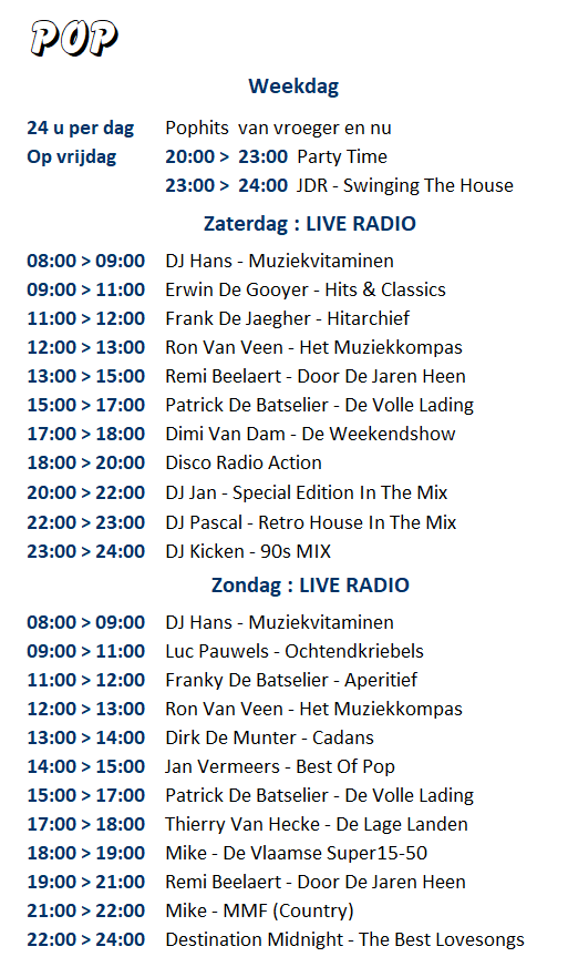 Superstar Pop : 80s > 20s en Live radioprogramma’s tijdens het weekend.